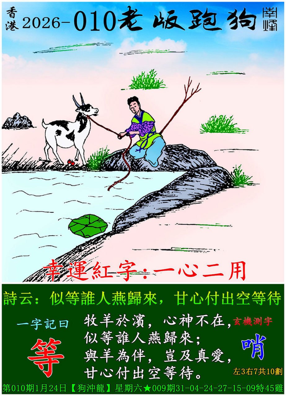 031期老版跑狗一字記之曰:【守】